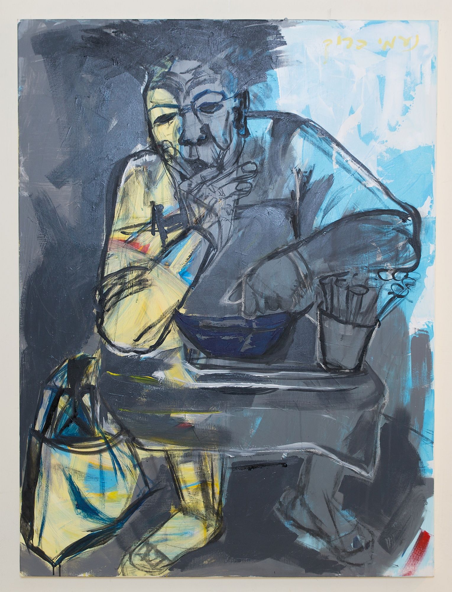 75x98 ציו בגירר פחם ואקריליק על עץ